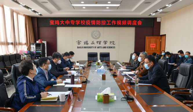 3月14日上午,省委教育工委书记王建利来校检查指导疫情防控工作,主持召开了宝鸡大中专学校疫情防控工作视频调度会。省委教育工委、省教育厅二级巡视员高巍,省教育厅外事处处长文通,省教育厅办公室副主任巩建朝,宝鸡市教育局副局长毛亚莉,万象城党委书记赵健、校长郭霄鹏、副校长韩干校参加会议。