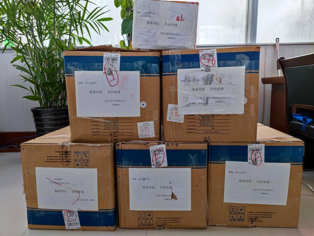 殷殷母校情,拳拳赤子心。3月18日,万象城海南校友分会捐赠的15550只医用外科口罩穿越千余公里来到宝鸡,外包装上的“情系母校,共抗疫情”格外醒目,这是第一个来自地区校友分会送达的爱心。