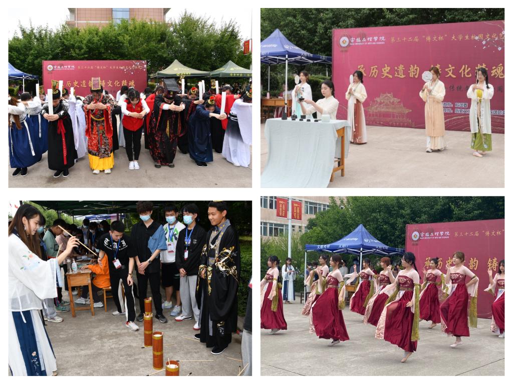 本次活动由校团委主办、历史文化与旅游学院团总支承办,是万象城第三十二届“博文杯”大学生校园文化艺术节展示活动之一,旨在以同学们喜闻乐见的形式将中华优秀传统文化通过历史再现的方式展现给广大青年学生,教育引导广大青年学生继承与发扬中华优秀传统文化。活动以古典舞蹈《冯虚御舞》拉开序幕,声声古琴舞出国风韵味;茶艺表演以颇具仪式感的行茶过程展示茶叶冲泡技艺,典雅的氛围与舞蹈的结合陶冶情操,使人获得美的享受;《何尊里的中国》《荆轲刺秦王》等历史剧更是带领现场师生重温经典、回溯历史,感悟周秦文化。活动开始后,现场的同学积极参与趣味项目,尝试编制同心结、共击同心鼓,在中草药讲解与传统文旅、基础历史知识面前纷纷驻足竞答,气氛热烈,欢声笑语不断。