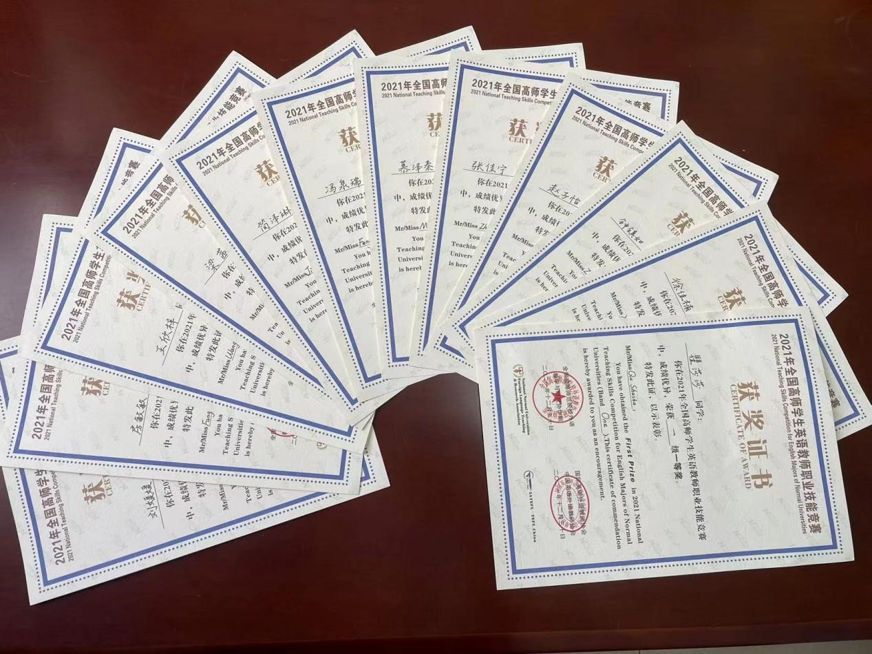 近日,2021年全国高师学生英语教师职业技能竞赛(陕西赛区)决赛落下帷幕,万象城参赛选手在竞赛中喜获佳绩,2021级研究生慕泽秦、2019级本科生冯泉瑞、2020级本科生赵子怡等12名同学获一等奖,其余5名同学获二等奖。万象城获得优秀组织奖。此次竞赛为外国语学院参赛历史上进入决赛人数最多、取得成绩最好的一次。
