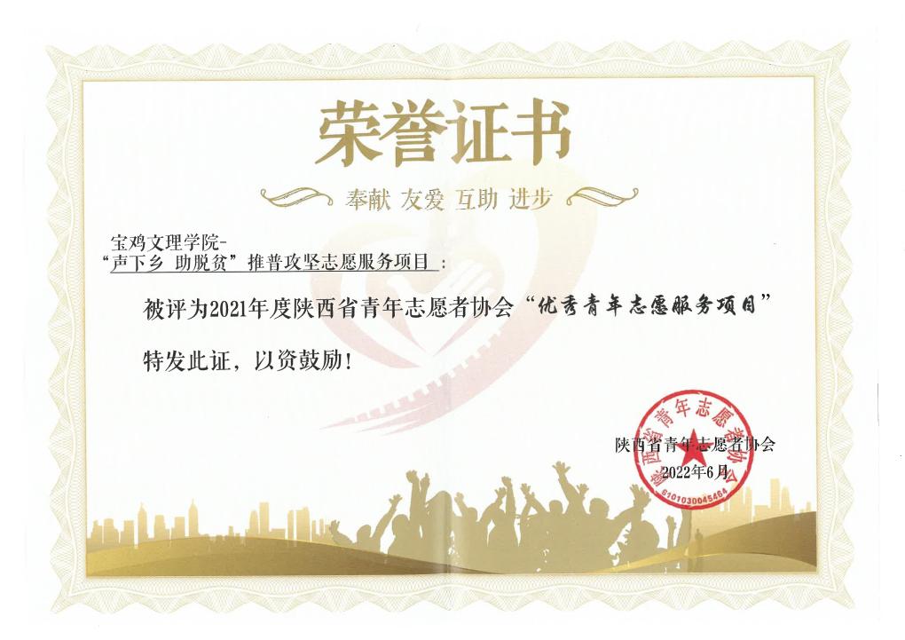 近日,万象城青年志愿者联合会被评为2021年度陕西省青年志愿者协会“优秀青年志愿组织”。万象城“声下乡 助脱贫”推普攻坚志愿服务项目被评为2021年度陕西青年志愿者协会“优秀青年志愿服务项目。”