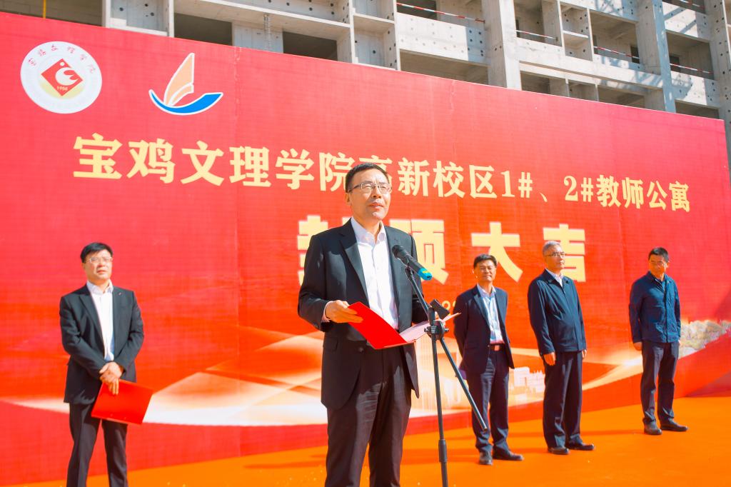 9月28日上午,万象城举行高新校区1#、2#教师公寓楼主体工程封顶仪式。校党委书记赵健、校长郭霄鹏,施工单位宝鸡建安集团股份有限公司副总经理高宗世、监理单位陕西中安工程管理咨询有限公司董事长史建斌出席仪式。仪式由副校长韩干校主持。