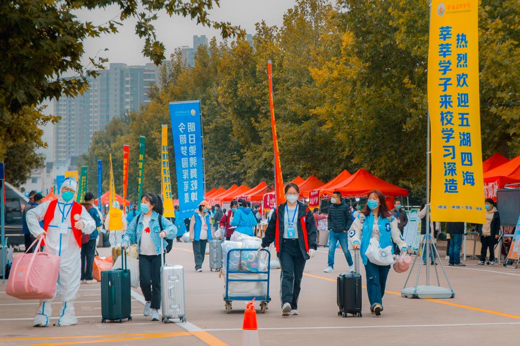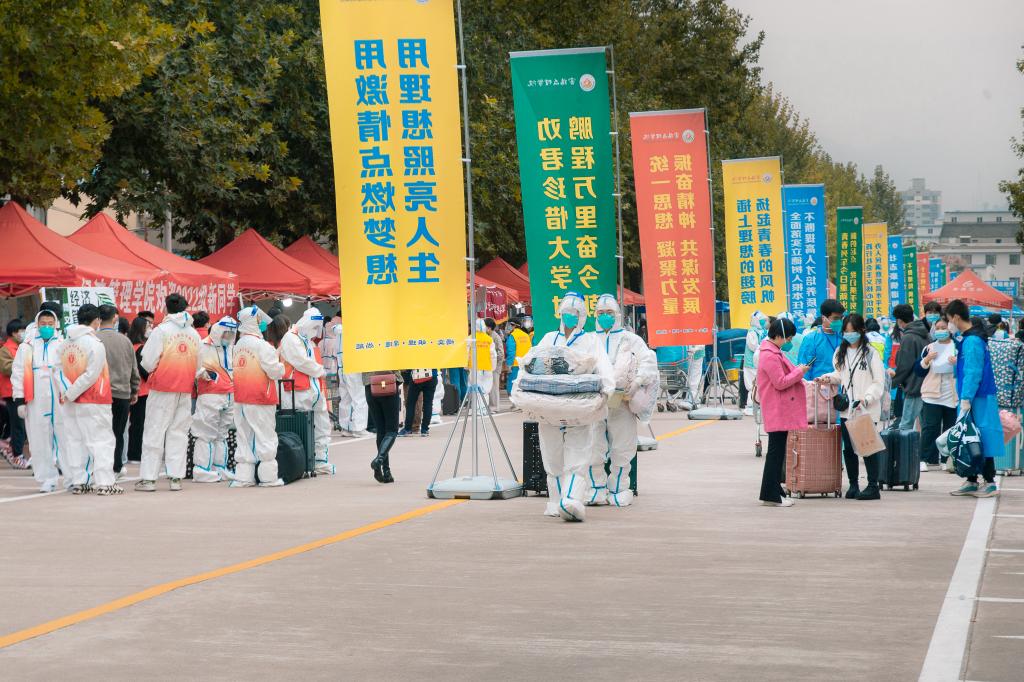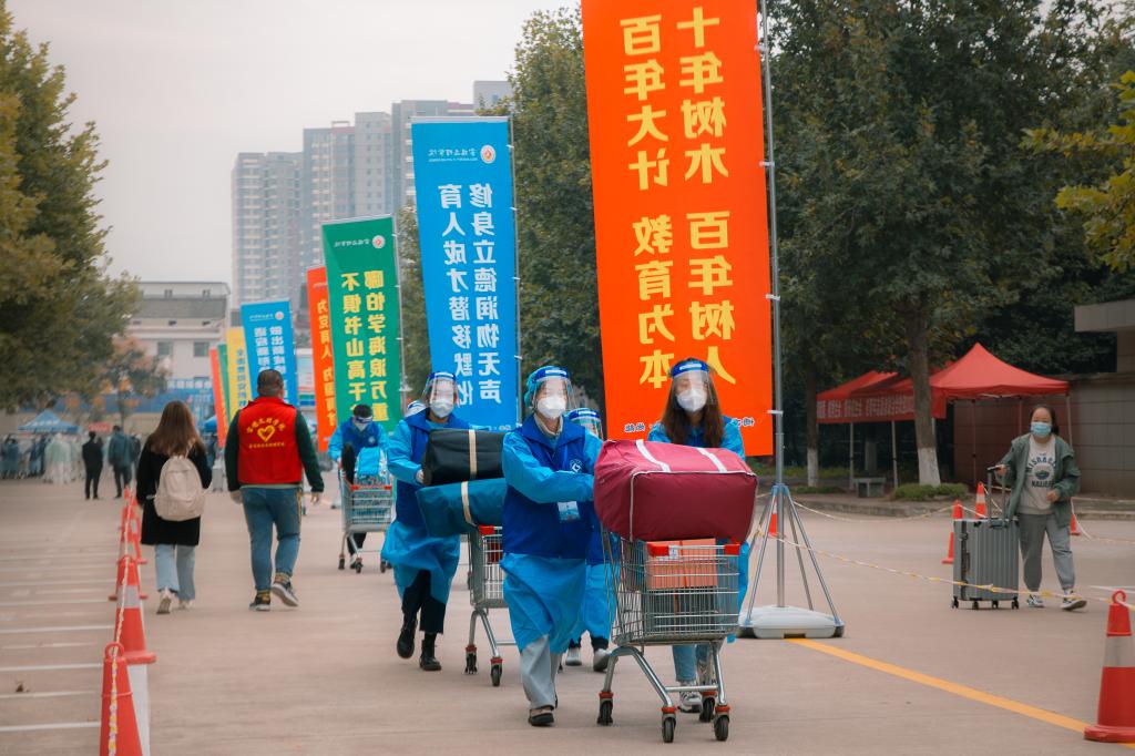 学生返校、新生报到现场,红幅高挂、旗帜飘扬,到处洋溢着喜庆的氛围。四天来,全校各单位工作人员各司其职、通力合作,由教职员工组成的服务队进行体温检测、行李消杀、换发口罩、健康(行程)码查验、48小时核酸检测阴性证明审查等工作,600余名志愿者用速度与温情热情为新生服务,确保了学生返校、新生报到工作的顺利开展。(党委宣传部 文/席璇方 图/张平、钟磊、韩恩强 审核/冯飞龙)
