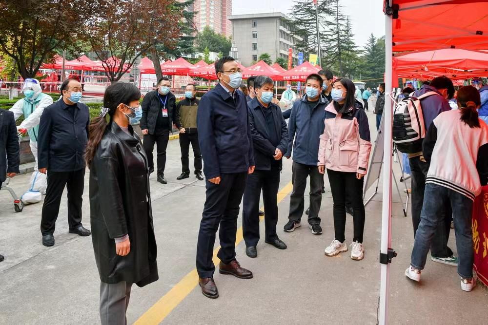 学校在宝鸡火车站、火车南站、高新高速出口设置学生接待点,调度车辆“点对点”闭环接回学生。10日上午,校党委书记赵健,校长郭霄鹏带队分别前往石鼓校区、高新校区各二级学院学生接待点、学生食堂、学生公寓及宝鸡火车站、火车南站、高新高速出口学生接待点,现场检查指导学生返校工作并慰问工作人员,询问工作流程,对接待师生的辛勤工作表示感谢,要求他们切实做好个人和返校学生的人身和财产安全,确保学生安全快捷地返校。