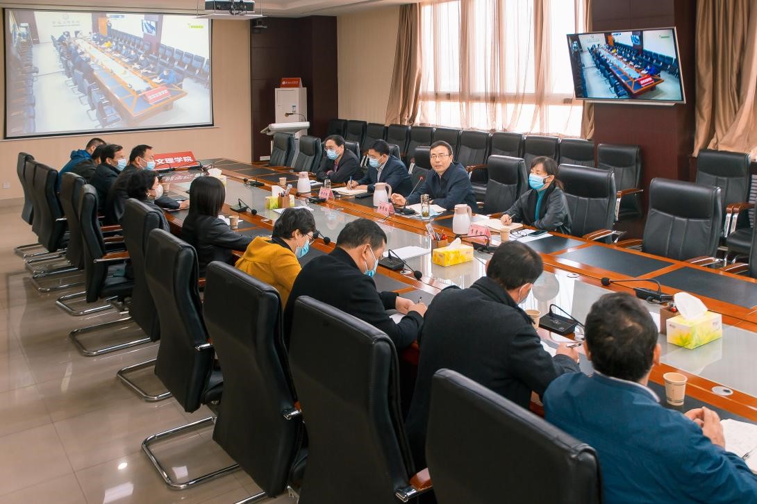 10月20日上午,校长郭霄鹏在高新校区图书馆801会议室主持召开疫情防控工作会议。副校长李景宜、韩干校出席会议。