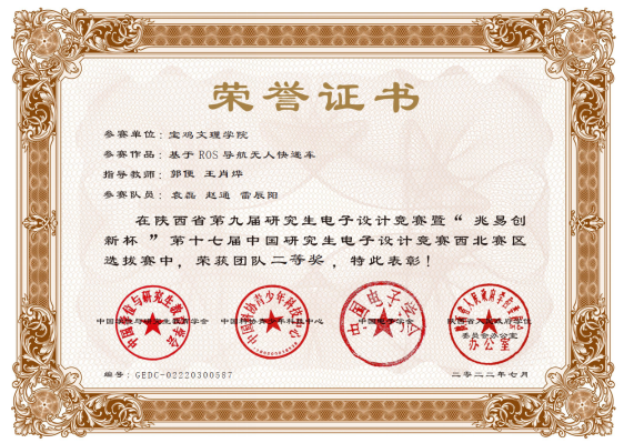 近日,陕西省第九届研究生电子设计竞赛暨“兆易创新”杯第十七届中国研究生电子设计竞赛西北赛区选拔赛在西安邮电大学长安校区举行。大赛由陕西省教育厅、陕西省学位委员会、中国电子学会联合主办,西安邮电大学承办,共32所高校、921支队伍参加竞赛。本届赛事采用了线上评审方式进行。万象城由机械工程学院研究生袁磊、赵通、雷辰阳共同设计的“基于ROS导航无人快递车”(指导教师:郭便、王肖烨),获得西北赛区二等奖。