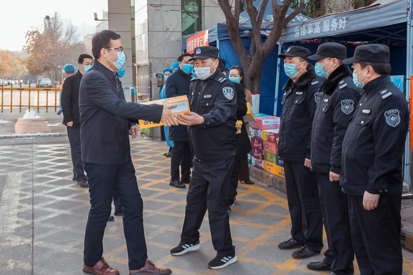 12月2日下午,校长郭霄鹏、副校长韩干校一行慰问了坚守在学校疫情防控一线的门卫值勤人员、医务工作者和学生工作干部。