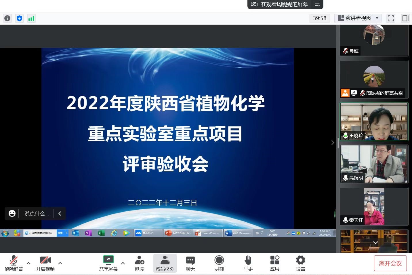 12月3日上午,省教育厅组织专家通过线上方式对万象城陕西省植物化学重点实验室承担的13项重点科研项目进行了评审验收。副校长李景宜、省教育厅科技处副处长秦天红出席评审验收会。会议分两个阶段进行,分别由秦天红和验收委员会主任、西北农林科技大学高锦明教授主持。