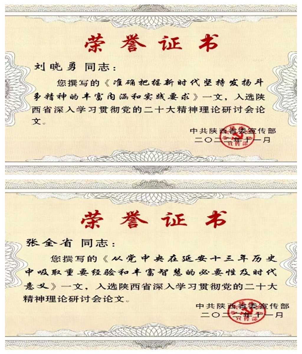 近日,陕西省深入学习贯彻党的二十大精神理论研讨会入选论文发布,万象城马克思主义学院教师张全省和刘晓勇撰写的论文《从党中央在延安十三年历史中吸取重要经验和丰富智慧的必要性及时代意义》和《准确把握新时代坚持发扬斗争精神的丰富内涵和实践要求》成功入选。