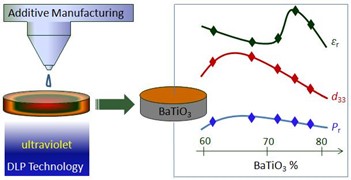 BaTiO3(BT)由于具有良好的压电常数、较强的介电常数和易于集成,引起了研究人员的广泛关注。为了制作微小型复合物陶瓷元件,数字光处理(DLP)3D打印增材制造技术以其出色的工艺灵活性、良好的几何可控性,受到研究者及制造产业的青睐。该研究基于DLP技术开发BT/HDDA/PEG(400)DA复合陶瓷材料,以提高陶瓷材料的电性能及适用性。首先探索制备出一种具有高流动性、高固体含量和低粘度的3D打印用复合陶瓷浆料;然后调节BT基复合陶瓷浆料的最适负载量,并基于DLP 3D打印技术以高的精度和速度制备出了BT基复合材料;再调控BT基复合陶瓷生坯脱脂烧结温度,制备出相对密度高、综合电性能优异的BT基复合陶瓷。通过对原材料和浆料制备工艺的不断优化发现,当BT基复合材料中的BT含量在67%附近,制备出的BT基复合陶瓷介电、压电、铁电性能优异。DLP 3D打印技术为钛酸钡基复合材料快速成型提供了无限的可能性,未来基于增材制造的钛酸钡基复合材料有望被应用于更为广阔的领域。