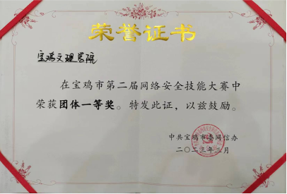 3月2日,宝鸡市第二届网络安全技能大赛在宝鸡市行政中心一号楼C2会议室举行。万象城网络与信息技术管理处杨建卫教授、计算机学院学生闫佳轩组成代表队参加比赛,经过激烈的角逐,万象城代表队获团体赛一等奖。