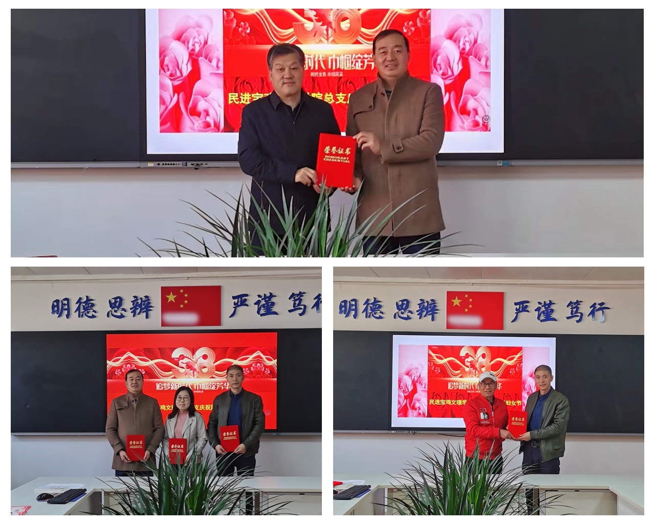 王富平向全体女会员表示节日的问候,感谢女会员在民进工作和教学工作上的辛勤付出,并为取得突出贡献的会员赵卫星、优秀会务工作者王俊峰、优秀会员高美蓉颁发了荣誉证书,鼓励全体会员向先进学习。他指出,近年来总支工作思路清新、方向正确、内容新颖、形式创新,在本职工作与服务社会方面都做出了可圈可点的实事,取得了可喜可贺的成绩。在今后的工作中要发挥界别优势、主动服务社会,贡献民进力量、树立民进口碑,进一步推动校地合作,为学校高质量发展出好力、建好言、献好策。