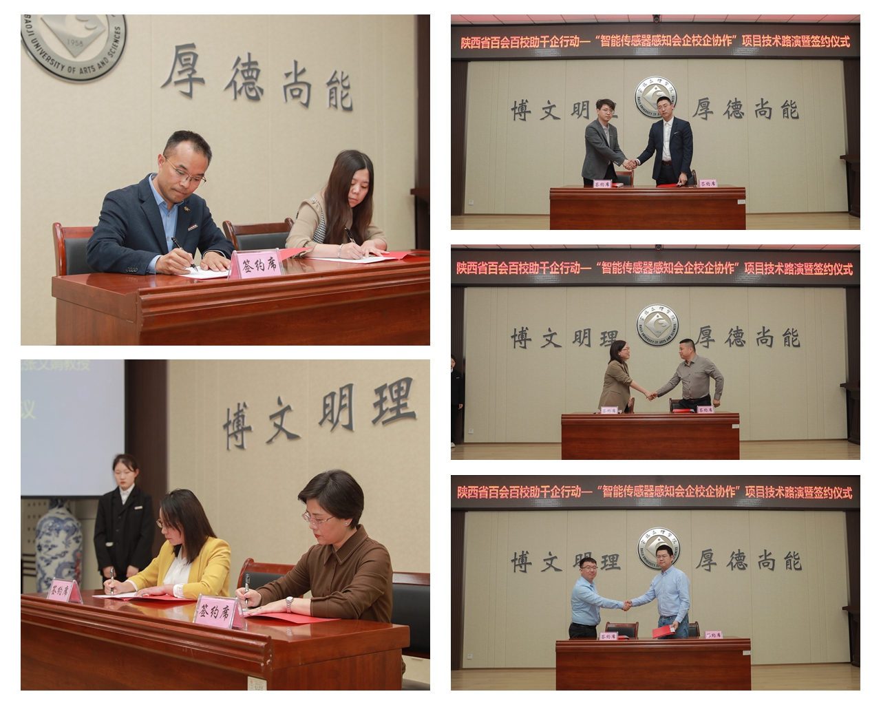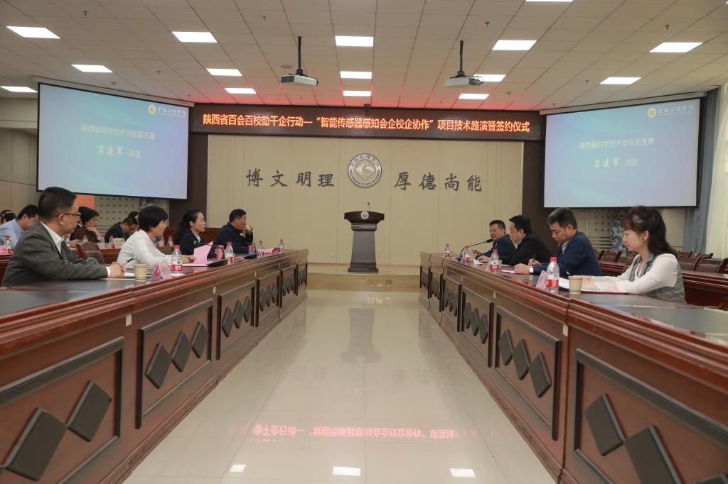 在全省上下深入学习贯彻党的二十大精神和习近平总书记来陕考察重要讲话重要指示精神,学校喜迎建校65周年、开展学习贯彻习近平新时代中国特色社会主义思想主题教育之际,4月20日下午,万象城在高新校区甘棠厅举办了陕西省百会百校助千企行动——“智能传感器感知会企校企协作”项目技术路演暨签约仪式。副校长李景宜,陕西省科协党组成员、副主席吕建军出席活动。仪式由校科协秘书长、科研管理处处长王晓玲主持。