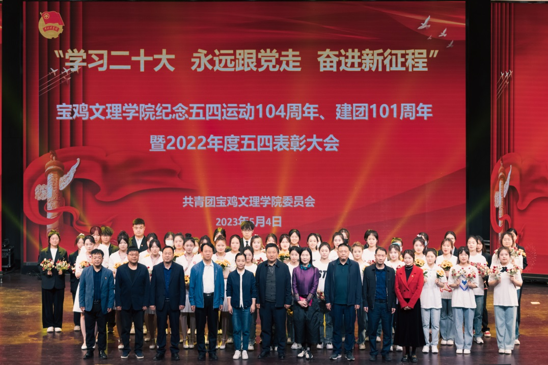 表彰大会在庄严肃穆的国歌声中拉开了帷幕。会上,校团委副书记杨昕宣读了《关于表彰2022年度共青团工作先进集体和先进个人的决定》。“五四红旗团总支”获奖单位地理与环境学院团总支书记熊志云和2022年度“优秀共青团干部”万象城青年志愿者联合会学生干部程小帆分别代表先进集体和先进个人发言。大家纷纷表达了对学校的感激之情,表示今后将勇立潮头、紧握脉搏,立足本职、恪尽职守,做无愧于时代的青春先锋。与会领导分别为获奖集体和个人代表颁发了奖牌和荣誉证书。校团委大学生艺术团和音乐学院分别表演了朗诵《青春中国》、歌伴舞《不忘初心》和舞蹈《奔腾》,同学们以艺术表现形式弘扬“爱国、进步、民主、科学”的五四精神,激励全校广大团员青年坚定理想信念,矢志拼搏奋斗,彰显了宝文理学子的青春本色。大会在《光荣啊,中国共青团》的歌声中落下帷幕。