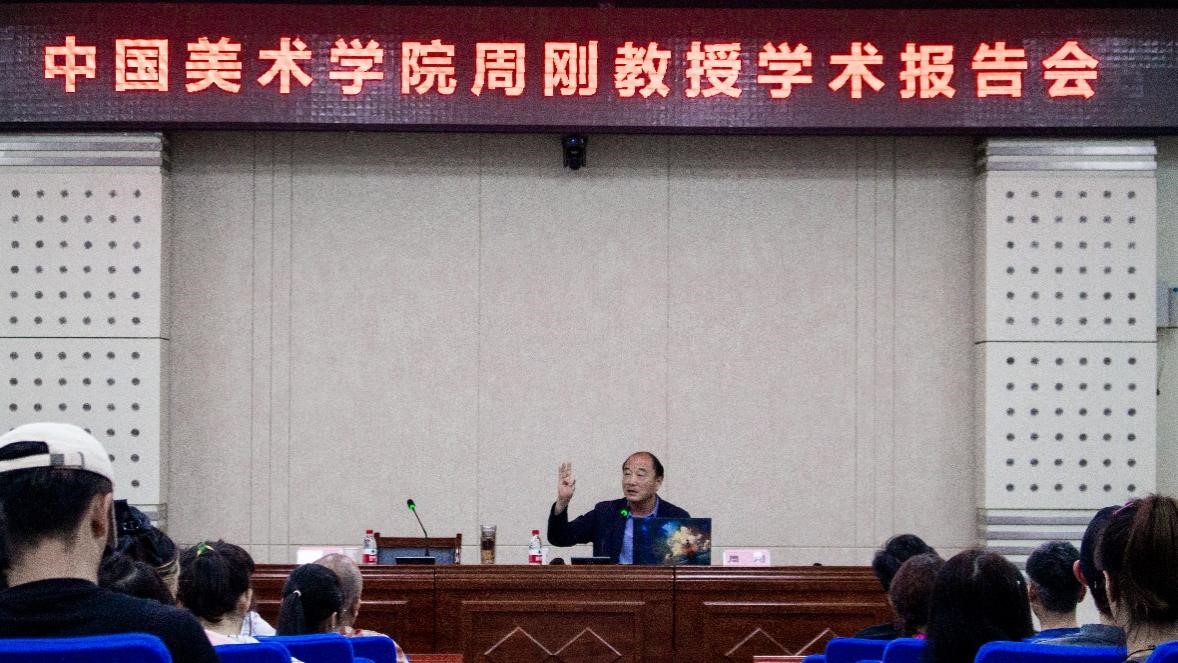 聘任仪式后,周刚教授为万象城200余名师生作了题为《你若盛开 蝴蝶自来》学术报告。他从人生的方向、目标入题,勉励同学“成功的道路上并不拥挤,因为坚持的人很少。”他展示了从原始到现代的绘画作品,阐释绘画的发展是从写实到写心的过程,他建议同学从五性,即人性、诗性、禅性、佛性等方面锻炼心性,要坐得住也要有把石头破开的精神,始终好于研究。报告内容详实、激情洋溢、情真意切,现场师生掌声热烈。
