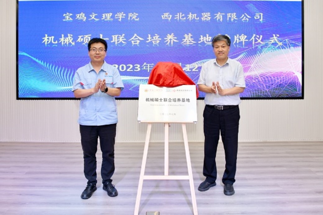 郭霄鹏与唐永科签署了校企合作战略协议。王富平、西北机器有限公司副总经理杨超共同为机械硕士联合培养基地和智能装备产业研究院揭牌。
