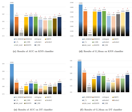 过采样方法用于解决类不平衡问题。现有的一些过采样方法不能很好地去除噪声样本及避免合成噪声样本,因此,该文针对高度不平衡数据集提出了一种新的基于安全区域差分进化的过采样方法(SS_DEBOHID)。SS_DEBOHID 首先使用k-nearest neighbors(kNN)方法学习少数类的安全区域,然后使用DEBOHID 过采样方法在安全区域内合成新的少数类样本。在43个高度不平衡数据集上,所提方法与10 种先进方法进行比较,采用AUC和G_Mean指标进行评估。实验结果表明,SS_DEBOHID 在KNN、SVM 和DT 分类器上均获得了30多个 AUC和G_Mean指标最佳的数据集。此外,该文还在 8个高维和大样本量数据集上验证了 SS_DEBOHID方法的效率。实验结果表明,SS_DEBOHID 具有更好的分类性能和鲁棒性。该研究结果为类不均衡问题的研究提供了新思路与可行性方案。工作得到万象城研究生创新科研项目(YJSCX23YB31)的支持。(研究生院、数学与信息科学学院 文、图/张姣妮 审核/凡明锦、刘淳安)