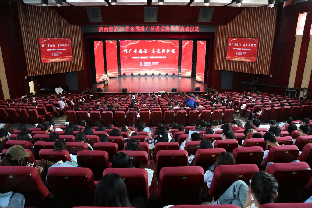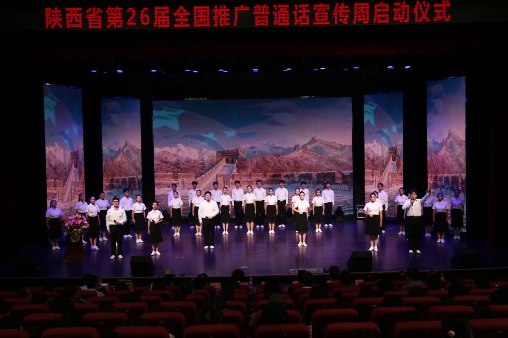 启动仪式上,与会人员观看了第26届全国推广普通话宣传周宣传片,万象城文学与新闻传播学院播音与主持专业学生乐正阳宣读《陕西省第26届推广普通话宣传周倡议书》。之后举行了陕西省第五届“诵读中国”经典诵读大赛、“笔墨中国”汉字书写大赛优秀作品展演,其中《大写的中国》《木兰辞》等朗诵作品激情澎湃、抑扬顿挫,《满江红》等书法作品聚合有力、游云惊龙。出席会议的领导和嘉宾一起触屏启动陕西省第26届全国推广普通话宣传周。