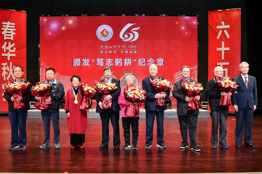 赵健在讲话中指出,65年来,一代代文理人筚路蓝缕,奋勇开拓,文理精神薪火相传,教泽流芳。学校始终坚守立德树人初心,牢记为党育人、为国育才使命,着力提升人才培养质量和科研服务能力,全面推进各项事业高质量发展,走出了一条省属地方院校高质量创新发展之路。他强调,65载风雨兼程,立德树人,承载了光荣与梦想;65载薪火相传,桃李芬芳,承载着璀璨与辉煌。教育强国期待着宝文理更加精彩绝伦的“答卷”,民族复兴期待着宝文理更加铿锵有力的回答,学校将坚持以习近平新时代中国特色社会主义思想为指导,深入学习贯彻党的二十大精神,全面落实党的教育方针,弘扬文理精神,传承文理校训,锚定更名大学目标,踔厉奋发,努力向着特色鲜明的高水平教学研究型大学宏伟目标勇毅前行,为全面推进中国式现代化建设,实现中华民族伟大复兴作出新的更大贡献。