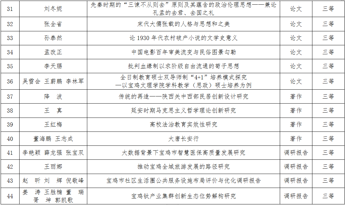 宝鸡市第十七次哲学社会科学优秀成果奖获奖列表