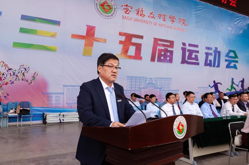 校长郭霄鹏致开幕辞。他指出,学校深入学习贯彻党的二十大精神和习近平总书记关于教育、体育的重要论述,坚持五育并举,把体育放在人才培养的重要位置,出台了全面加强和改进新时代体育工作实施方案,以服务学生全面发展、增强综合素质为目标,坚持健康第一的教育理念,大力加强和改进体育教育教学,广泛开展群众性体育活动,推动学生文化学习和体育锻炼协调发展。运动会是学校体育工作的重要组成部分,是对广大师生体育运动水平的一次全面检阅,更是广大师生精神风貌和综合素质的一次集中展示。他希望全体运动员凝聚体育力量,传承体育精神,顽强拼搏、勇往直前,强健体魄、磨砺意志,真正做到野蛮体魄、文明精神;希望广大师生将顽强拼搏、团结合作、永不言败、超越自我的体育精神融入日常工作和学习中,奋力谱写学校高质量发展新篇章。