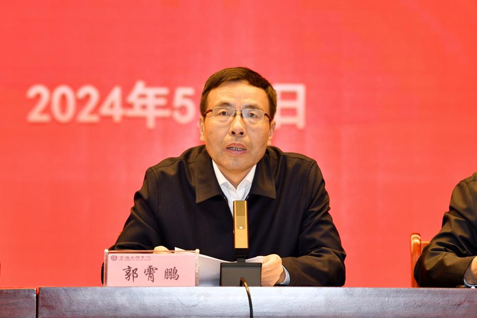5月7日下午,学校在高新校区博文楼报告厅召开2024年全面从严治党暨党纪学习教育工作推进会。校党委书记赵健出席会议并讲话,校党委副书记、校长郭霄鹏主持会议。