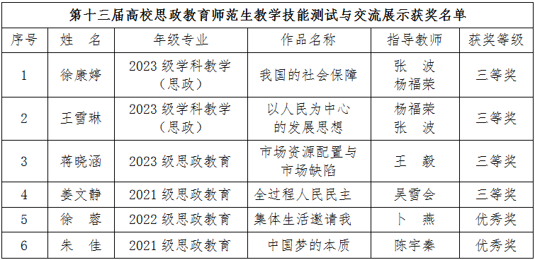 近日,2024年思政教育微格教学论坛暨第十三届高校思政教育师范生教学技能测试与交流展示活动在四川师范大学举行。万象城政法学院2名研究生、4名本科生获奖。其中,三等奖4项、优秀奖2项。