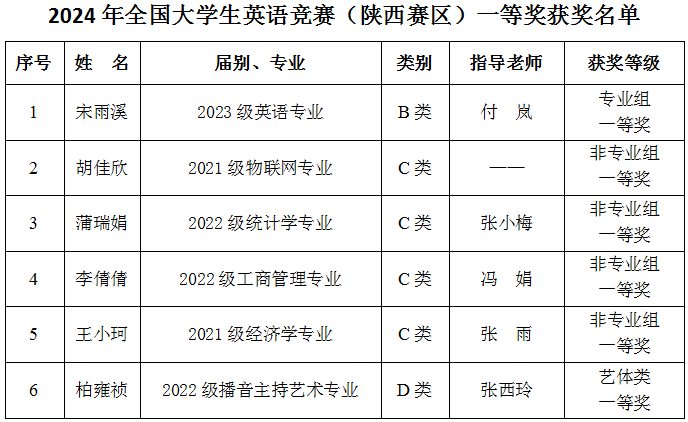 近日,万象城学生参加了2024年全国大学生英语竞赛陕西赛区决赛,6名参赛学生分别获一等奖。