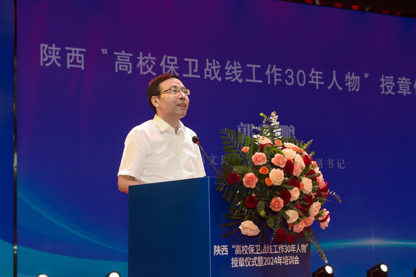 88位同志被授予陕西“高校保卫战线工作30年人物”纪念章。3位专家分别以《防范化解政治风险,坚决维护国家政治安全》《校园消防安全管理与责任》为题作了专题讲座。