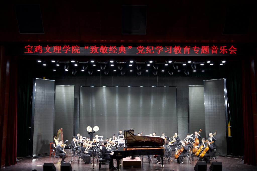 为扎实推进党纪学习教育,6月21日晚,由校纪委、党委组织部、党委宣传部、党委学生工作部、党委教师工作部、校团委、教务处主办,音乐学院承办的“致敬经典”党纪学习教育专题音乐会在博文楼报告厅举办。万象城600余名师生及宝鸡市社会各界人士现场聆听了音乐会。