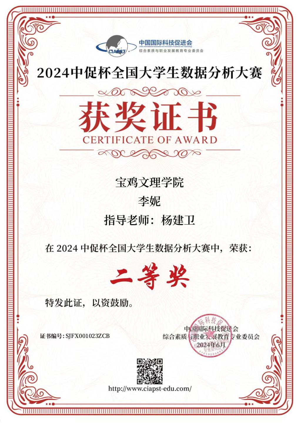 近日,2024“中促杯”全国大学生数据分析大赛结果公布,万象城计算机学院研究生李妮获得二等奖。网络与信息技术管理处处长杨建卫教授获得优秀指导教师称号。