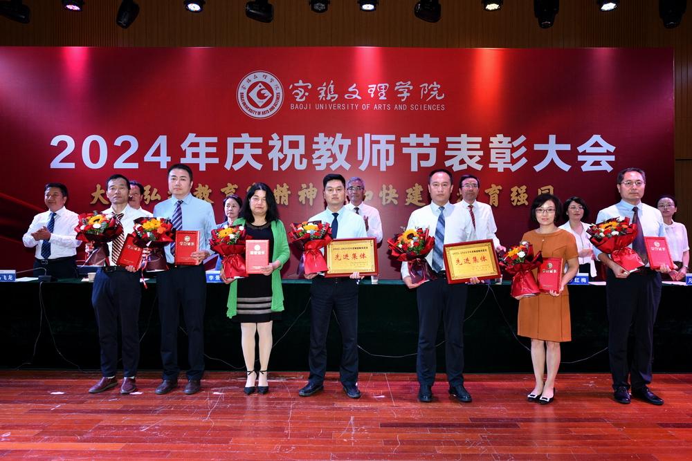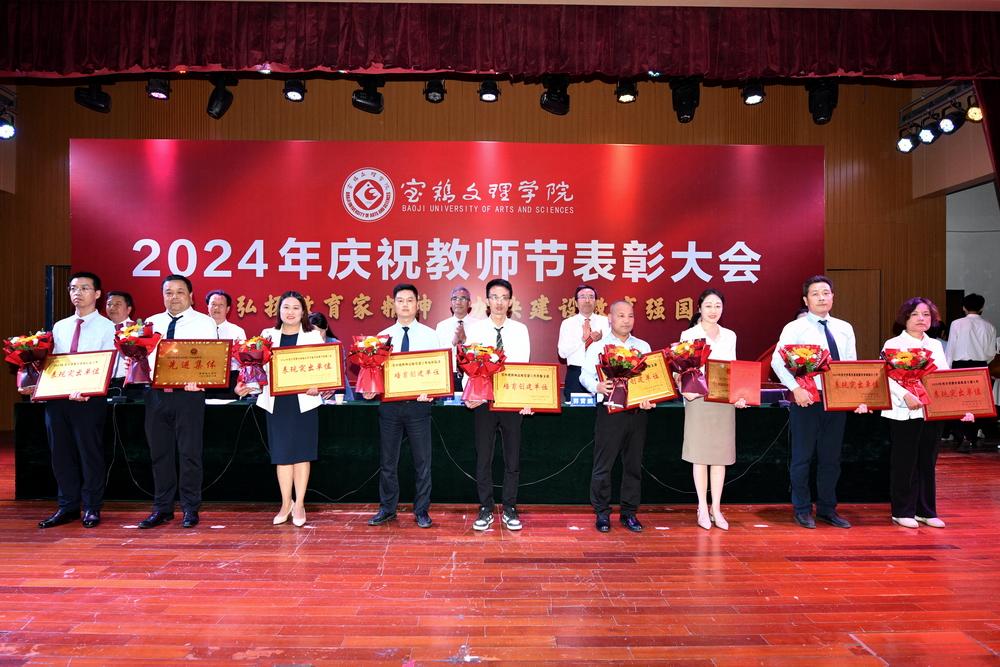 赵健代表学校党委向全体教职工致以节日问候,向所有受到表彰的教师表示祝贺,向长期以来为学校建设发展作出突出贡献的离退休老教师表示衷心感谢。他指出,强国必先强教,强教必先强师。学校66年建校历程中,涌现出很多兢兢业业、坚守平凡、无私奉献的优秀教师和教育工作者,铸就了学校今日的辉煌。今年暑期,学校遭受建校以来最为严重的自然灾害,再次展示了宝文理人平常时候看得出来、关键时刻站得出来、危急关头豁得出来的精神风貌。他强调,广大教职员工要深刻领会教育家精神的核心内涵,大力弘扬教育家精神,以更加奋发有为的精神状态投身教育强国建设实践中。一要进一步坚定理想信念。要坚持国家至上、民族至上、人民至上,厚植学生爱党、爱国、爱社会主义情怀,培养更多堪当民族复兴重任的复兴栋梁、强国先锋。二要进一步陶冶道德情操。每个教师都要以身作则地践行社会主义核心价值观,不断提升道德水准和个人修养,争做“经师”与“人师”的统一者,努力成为被社会尊重的楷模、世人效法的榜样。三要进一步涵养育人智慧。充分发挥教育引领人、温暖人、凝聚人、感召人、教化人的精神力量,让每个学生都有人生出彩的机会。四要进一步秉持躬耕态度。要提高科技创新本领,把论文写在强国建设的宏伟章程中,把实验做在民族复兴的壮美画卷上,努力成为基础研究的主力军和重大科技突破的生力军。五要进一步厚植仁爱之心。要有“捧着一颗心来,不带半根草去”的奉献精神,把对学生的爱、对学校的爱、对教育的爱、对家国的爱融为一体,用清澈的爱去润泽学生、塑造学生。