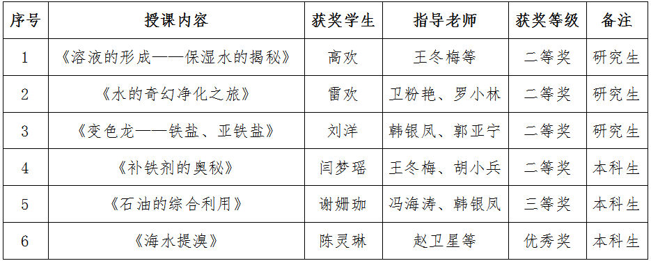 成绩展示了化学化工学院持续开展师范专业人才培养和教学改革的成效。通过参与竞赛拓宽了学生的视野,锻炼了学生的教学实践能力,为提高化学专业学生的专业技能和综合能力积累了宝贵经验。(教务处、研究生院、化学化工学院 文/李建鹏、高欢 审核/王参军、张光南、胡登卫)
