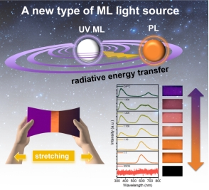 该研究工作主要针对性能优异的光致发光材料不具备力致发光性能,或者具备的力致发光性能较弱这一问题,提出了一种通过紫外力致发光材料的辐射能量传递,实现光致发光材料的力致发光性能从无到有或从弱到强的通用策略。此外,研究还发现,紫外力致发光材料作为能量供体,CaAlSiN3: Eu2+, BaMgAl10O17: Eu2+, Sr3SiO5: Eu2+等性能优异的光致发光材料作为能量受体,通过调整能量供体和受体的组成比例,可以使力致发光的颜色在一定范围内可调谐。在CAPC@energy acceptor@PDMS复合体系中,多色的力致发光性能依赖于简单的辐射能量传递(重吸收)机制,而不是离子激发态之间复杂的能量转移。使用这种策略,可以使某些高效的光致发光材料作为力致发光材料成为可能。这项工作为多色力致发光材料的选择和开发提供了一种简单、可行和通用的策略。(研究生院、物理与光电技术学院 文、图/董宇 审核/张光南、钱郁)