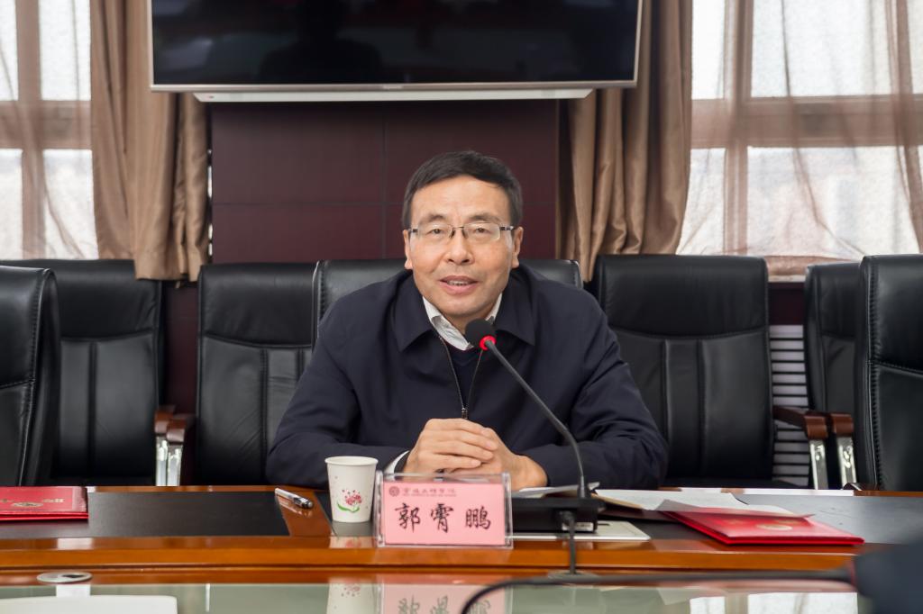 郭霄鹏代表学校向第八届学术委员会的成立和新当选的学术委员表示祝贺,并对新当选的学术委员提出了五点希望和要求:一是要做推动学校发展的“智囊团”。希望各位委员始终以学校发展为己任,展现出主人翁的姿态,充分发挥“思想库”和“智囊团”作用,为促进学校事业高质量发展提供建设性意见和建议。二是要做促进学科和专业建设的“引领者”。各位委员要发挥带头作用,带头抓学科建设和专业建设,加强本科特色专业点建设,优化专业结构,完善课程体系,为学校博士点建设和学科发展贡献力量。三是要做提升科研能力和彰显学术特色的“先行者”。各位委员要在学校科技发展中多做推动工作,强化科研意识,提升科研能力,打造学术特色,带动学科团队发展,努力推动学校科研工作迈上新台阶。四是要做师资队伍建设和青年教师成长的“助推器”。各位委员要把提高师资队伍学术水平作为一项重要工作来抓,要重视年轻学者的培养,发挥对青年教师的传帮带作用,不断提升教师队伍整体学术水平,努力打造一支师德高尚、业务精湛、结构合理、充满活力的高素质专业化教师队伍。五是要做强化学术治理和优化学术环境的“开拓者”。各位委员要以德修身、率先垂范,带头强化教风建设,以良好的教风引领学风和校风建设,要认真负责地参与学术评价,正确运用学术权力,坚持原则,严肃认真,实事求是,客观公正,要引领学术风气,努力营造风清气正的良好学术氛围,为学校事业高质量发展打好坚实基础。