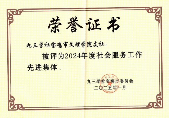 1月13日,九三学社宝鸡市第七届委员会第六次全体(扩大)会议召开,会议表彰了九三学社宝鸡市2024年度先进集体和先进个人。万象城九三学社支社获“社会服务工作先进集体”,社员何俊红、赵钊获“2024年度先进个人”荣誉称号。