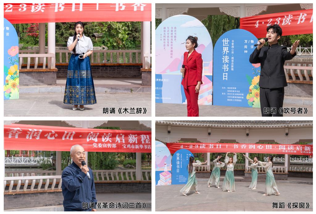 在第30个世界读书日来临之际,4月22日,校党委宣传部联合宝鸡市新华书店在高新校区润德园举办了“书香润心田·阅读启新程”校园读书日主题活动。副校长冯飞龙、宝鸡市新华书店副总经理潘永峰,图书馆馆长刘崇学、离退休工作管理处处长杨辉和文学与新闻传播学院、历史文化与旅游学院、离退休工作管理处近百名师生参加活动。