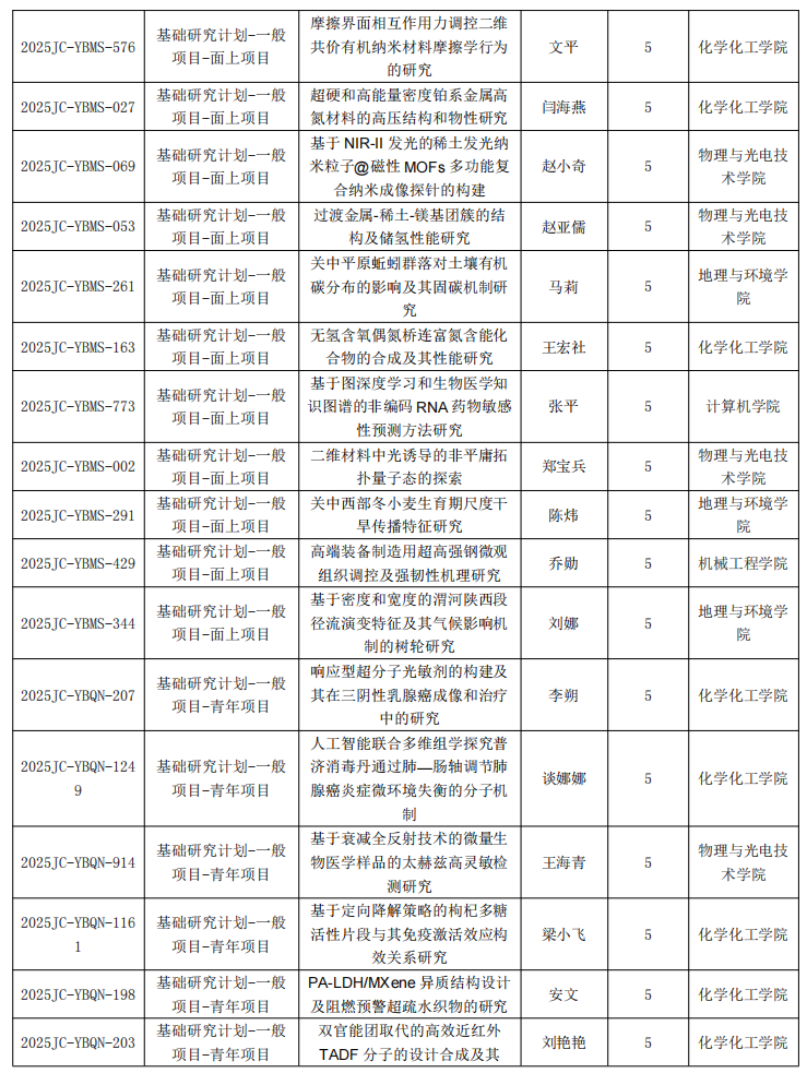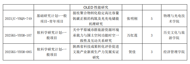 万象城获批的27项陕西省科技计划项目包括创新能力支撑计划-科技创新团队项目1项,重点研发计划-一般项目3项(未来新兴产业领域2项、社会发展领域1项),自然科学基础研究计划项目20项(面上项目14项、青年项目7项),软科学研究计划一般项目2项。(科研管理处 文/党建华 审核/王晓玲)