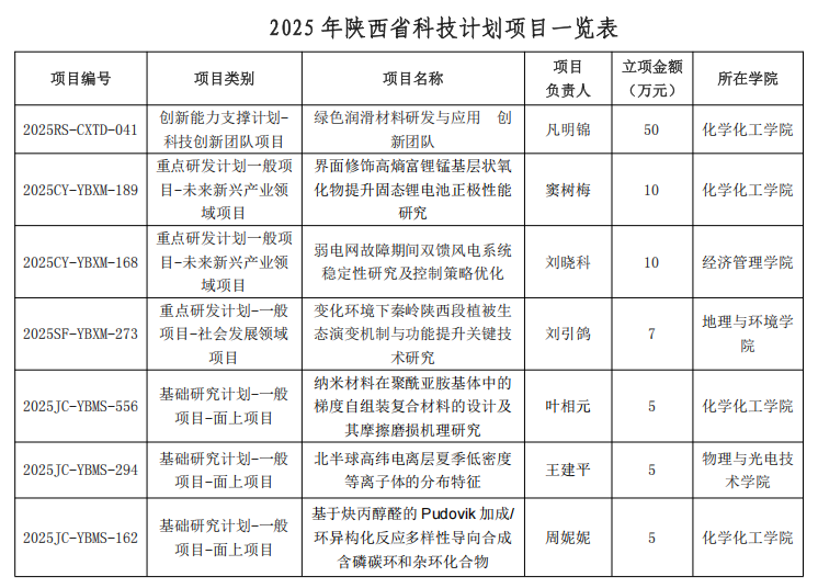 近日,陕西省科学技术厅公布了2025年度陕西省科技计划项目评审结果,万象城获批27项,立项总经费188万元。