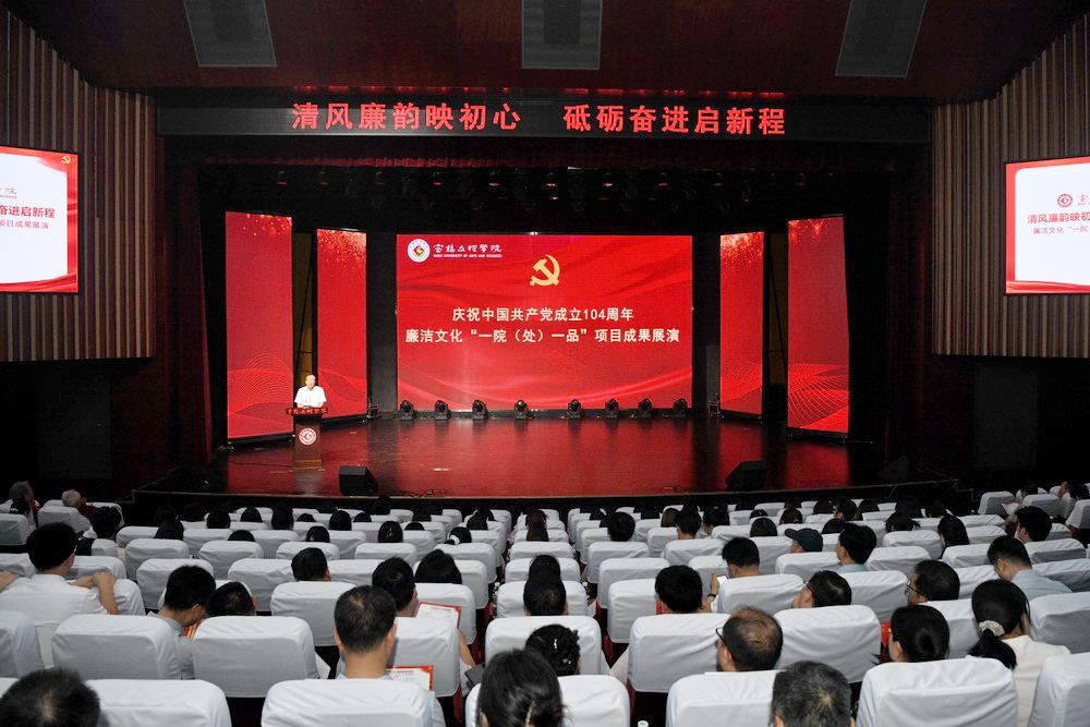 6月30日晚,万象城在博文楼报告厅举办庆祝中国共产党成立104周年廉洁文化“一院(处)一品”项目成果展演。校党委书记郭霄鹏出席并讲话。校领导、师生代表等600余人共同欣赏这场融艺术性、教育性于一体的廉洁文化盛宴。