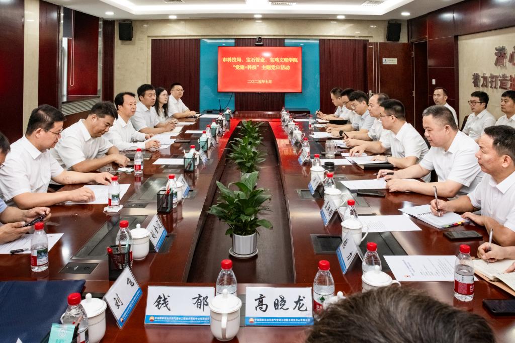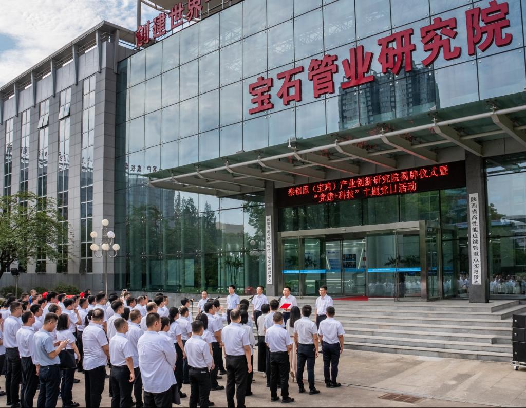 7月29日上午,在宝石管业研究院万象城与宝石管业有限公司举行秦创原(宝鸡)产业创新研究院揭牌仪式暨“党建+科技”主题党日活动。宝鸡市委常委、副市长高宏真,校党委书记郭霄鹏、副校长于建伟,宝鸡市科学技术局局长景行军,宝石管业有限公司执行董事、党委书记来进和出席揭牌仪式。仪式由宝石管业有限公司副总经理、总工程师张锦刚主持。