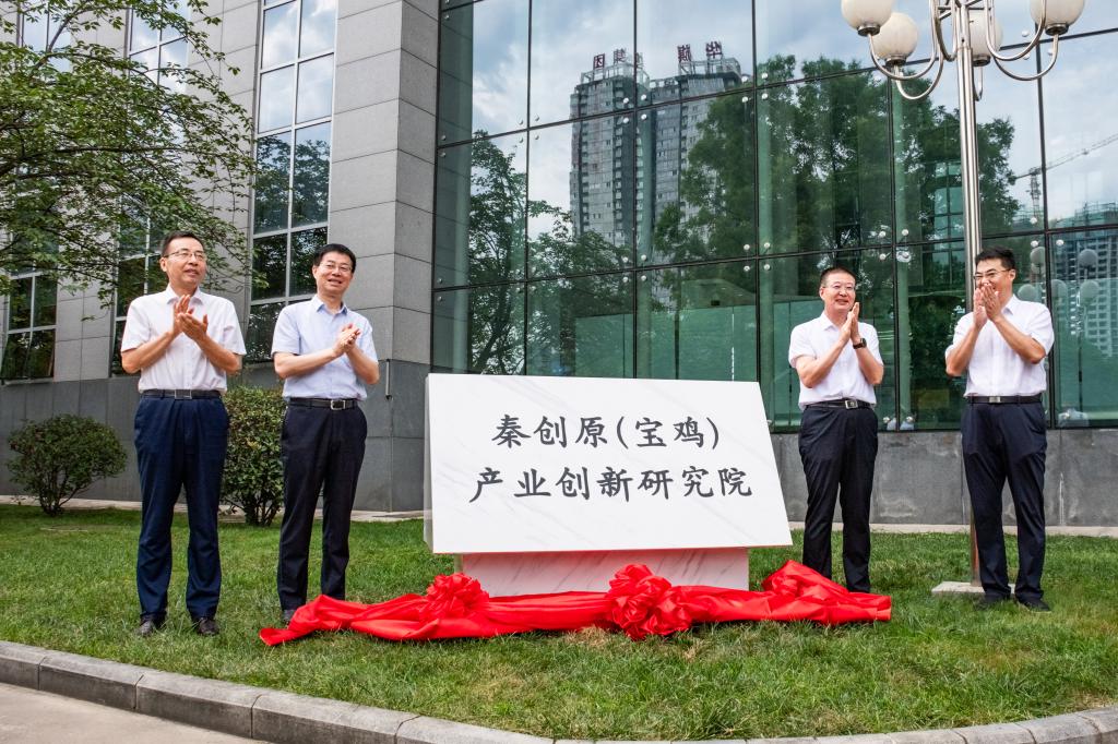 仪式上,高宏真、郭霄鹏、景行军、来进和共同为秦创原(宝鸡)产业创新研究院揭牌。
