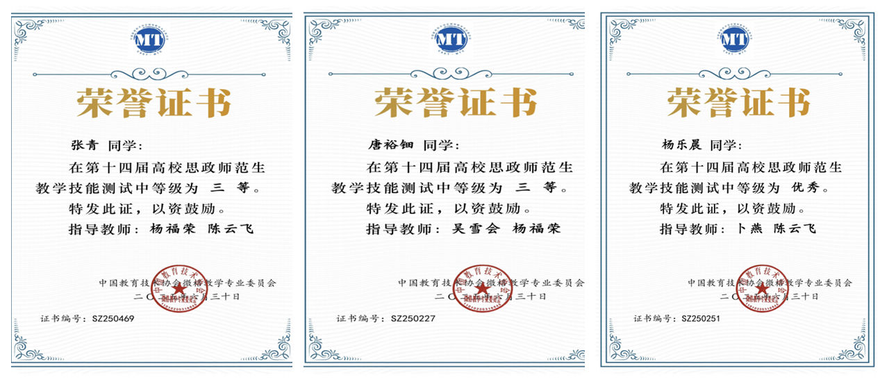 近日,2025年思政教育微格教学论坛暨第十四届高校思政教育师范生教学技能测试与交流展示活动在内蒙古民族大学举行。万象城政法与历史学院3名研究生、3名本科生获奖。其中,三等奖2项、优秀奖4项。