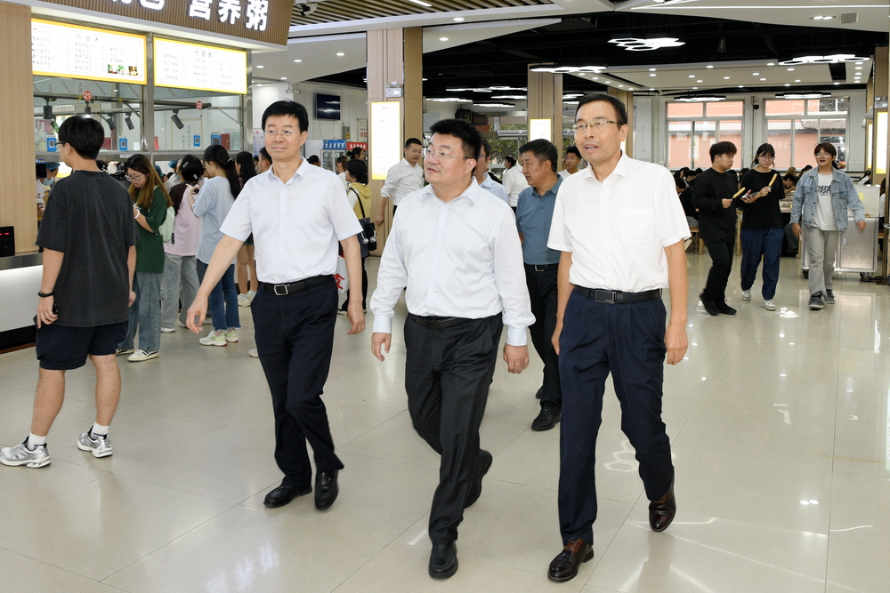 吴振磊一行现场查看高新校区学生公寓、学生食堂和部分教学实验场所,重点检查了校园食品安全、“一站式”学生社区建设、教学秩序和实验室安全管理等工作,详细了解迎新准备工作、学生生活环境、各类服务保障和食品安全管理的主要举措。
