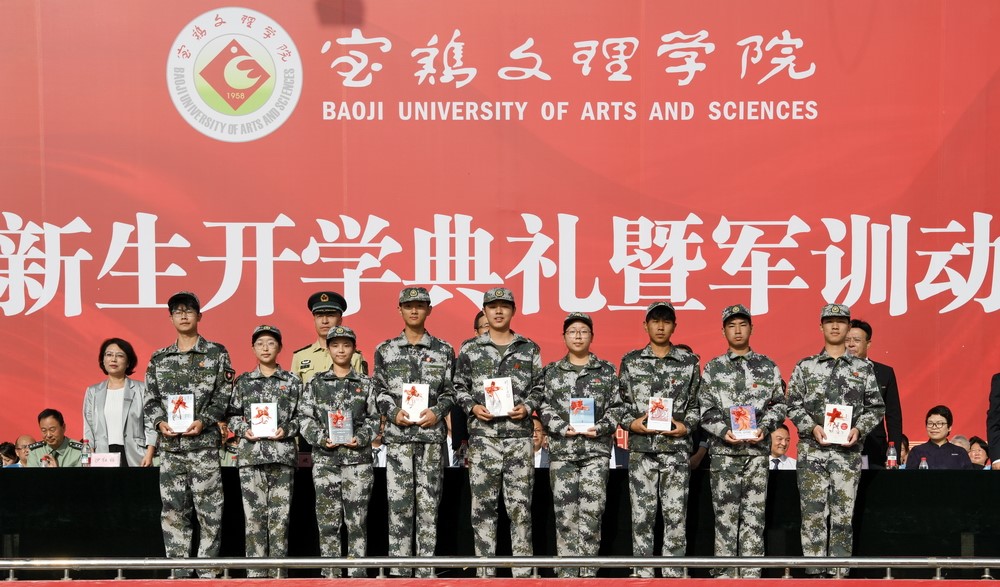 校领导为2025级新生代表授予校徽并赠送了经典著作,勉励同学们以书香为伴,勤于思考、勇于探索,在大学这座知识的殿堂里夯实根基、追求真理,用奋斗书写属于自己的人生华章。