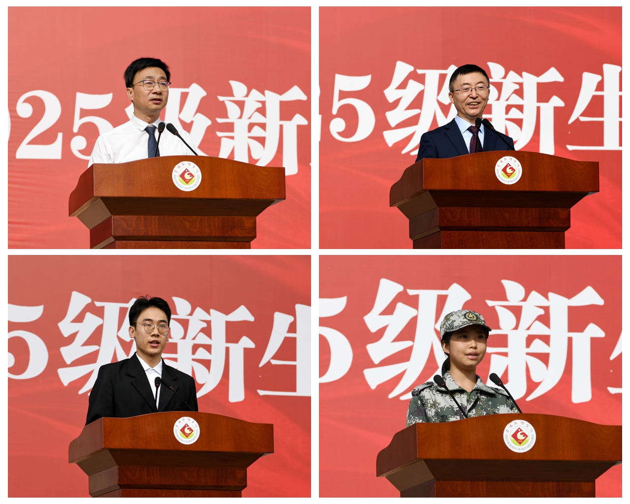 教师代表文学与新闻传播学院孟改正教授,优秀校友代表全国优秀教师、陕西省学科带头人、金台高级中学特级教师王维博,在校生代表机械工程学院2024级硕士研究生刘喆同学,新生代表教育学院2025级本科生王薇雅同学等先后发言,为2025级新生送上寄语和祝福。