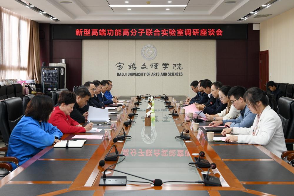 9月30日上午,宝鸡市人民政府党组成员、副市长张昭一行来万象城调研功能高分子联合实验室建设情况。调研座谈会在高新校区图书馆801会议室举行,校党委书记郭霄鹏、副校长凡明锦,宝鸡市人民政府副秘书长李金刚,宝鸡市科学技术局党组书记、局长景行军,宝鸡市科学技术协会党组书记、主席王若鹏,陕西长美科技有限责任公司董事长李慧玲,化学与材料工程学院院长冯海涛参加会议,科研管理处处长胡登卫主持会议。