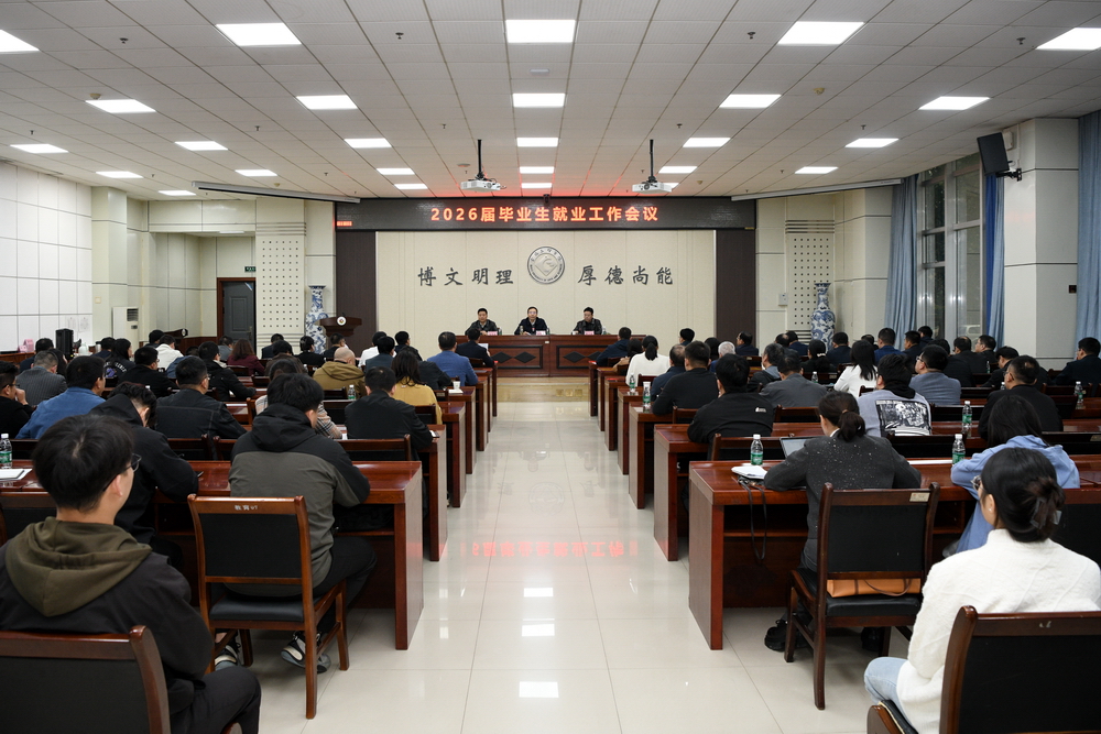 10月16日下午,学校在高新校区甘棠厅召开2026届毕业生就业工作会议。校党委书记郭霄鹏、副校长冯飞龙出席会议。会议由校党委副书记韩干校主持。
