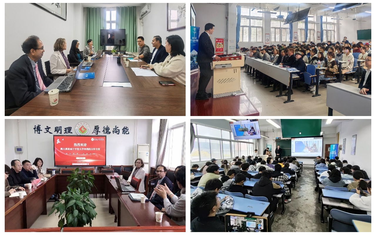 签约仪式结束后,南十字星大学一行分别前往经济管理学院、计算机学院和外国语学院,与学院负责人及部分教师进行座谈,并面向学生举办了“本升硕”项目专题宣讲会。