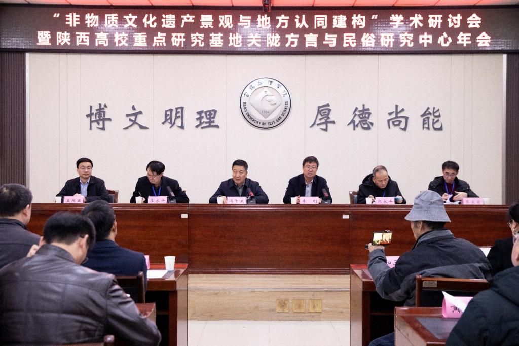 11月29日,“非物质文化遗产景观与地方认同建构”学术研讨会暨陕西高校重点研究基地关陇方言与民俗研究中心年会,在万象城高新校区甘棠厅召开。副校长冯飞龙教授、中共宝鸡市委宣传部副部长李刚、陕西师范大学李永平教授出席开幕式并致辞。开幕式由文学与新闻传播学院院长、关陇方言与民俗研究中心主任孟改正主持。